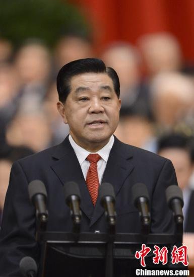 3月3日下午,中国人民政治协商会议第十二届全国委员会第一次会议在北京人民大会堂开幕。贾庆林代表政协第十一届全国委员会常务委员会,向大会作工作报告。中新社发 廖攀 摄